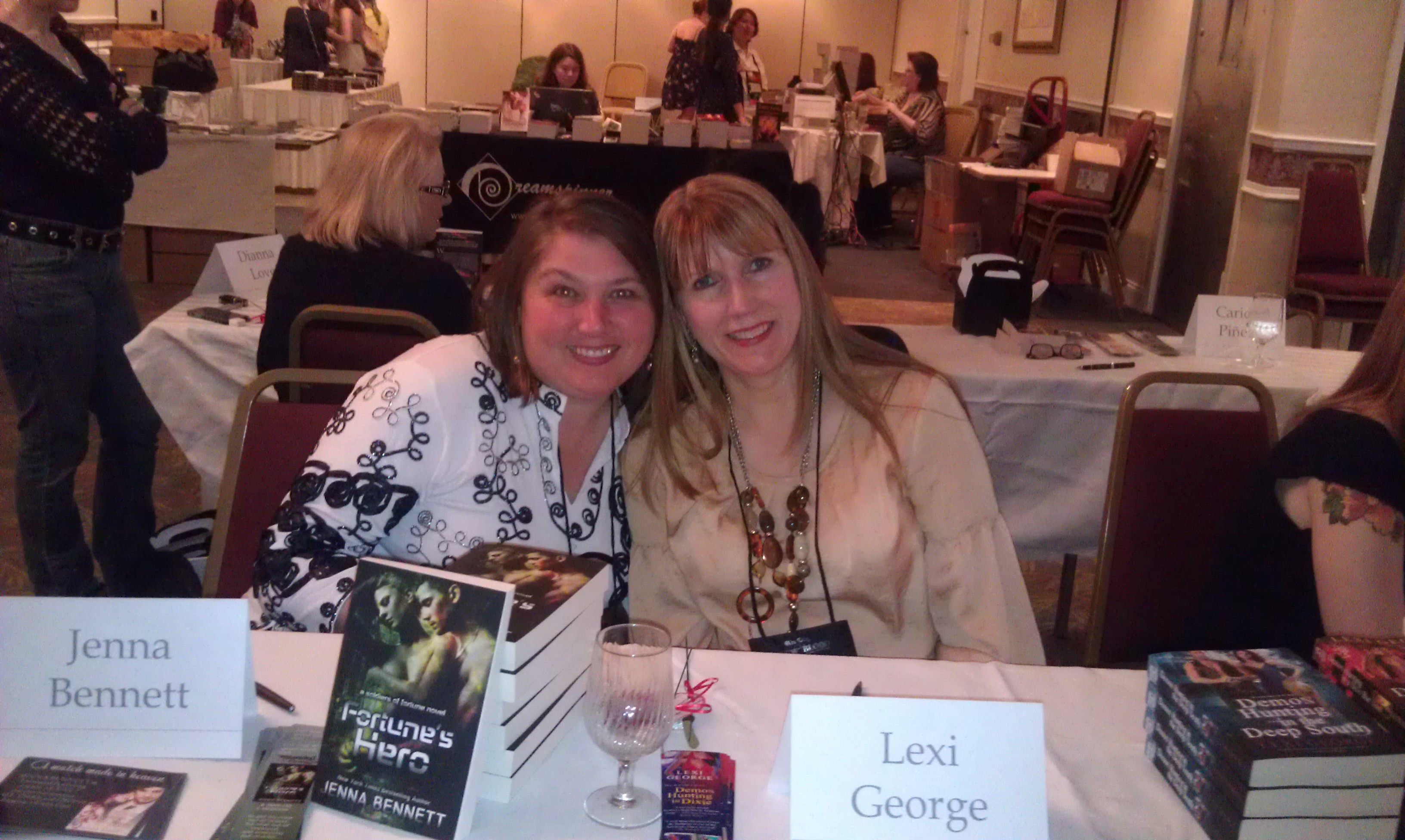 What I do want to talk about are some of my favorite moments from the conference. One of my big thrills was meeting one of my favorite new-to-me-authors of 2012 – Jenna Bennett. Just getting to meet her and play fan-girl would have made the event memorable, but I also got to go to lunch with her and author Lexi George. These ladies are both smart, funny, talented, and most of all, incredibly kind.