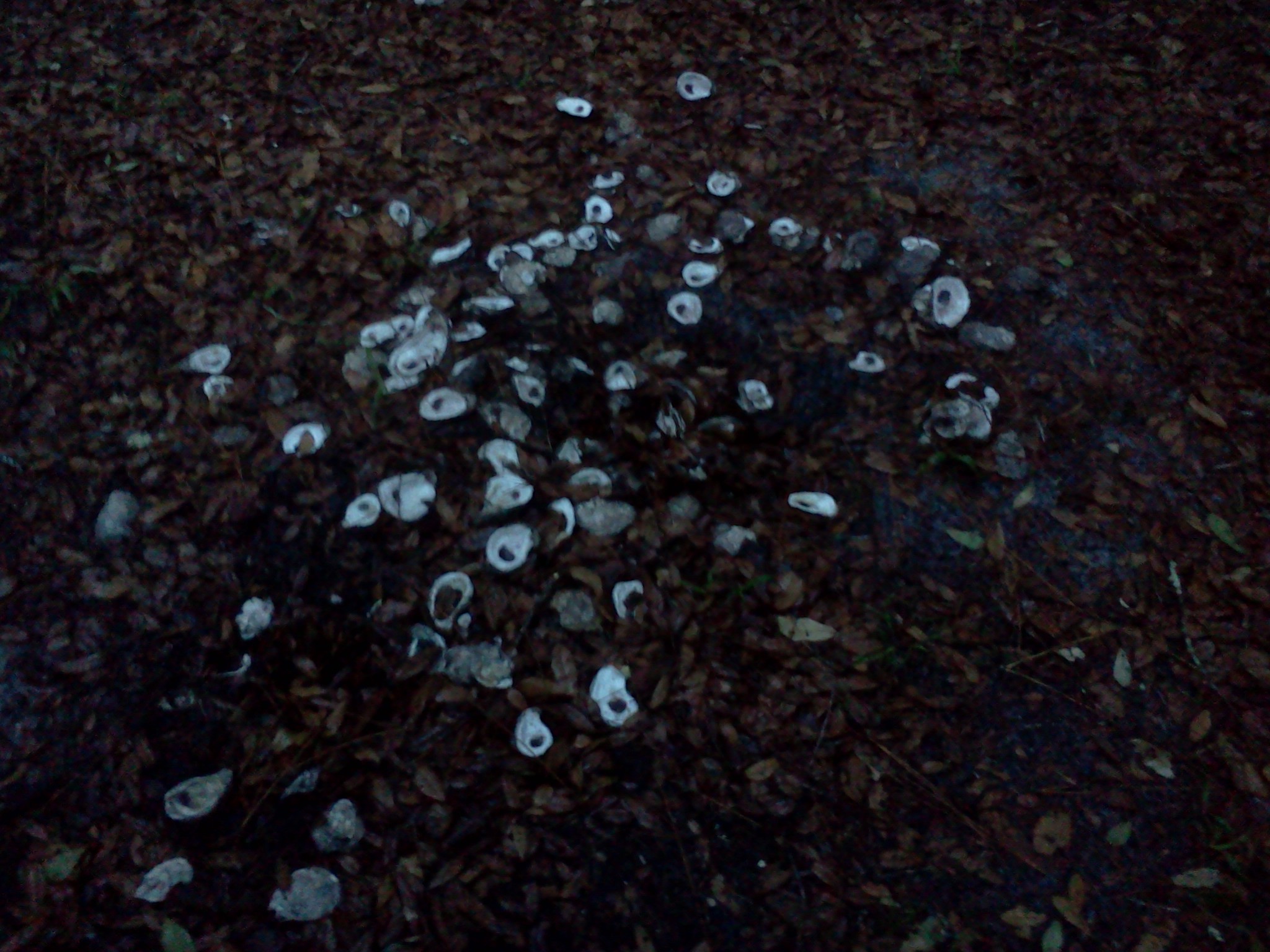 Oysters, tons of oyster shells littered the ground in a mound.
