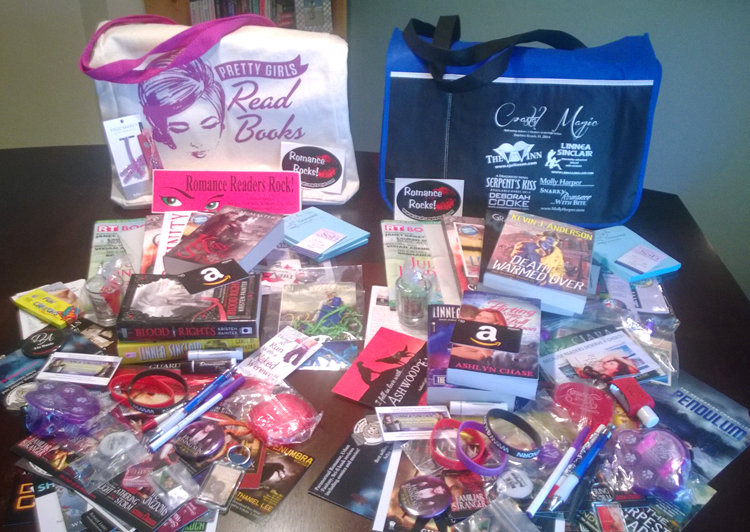 As promised, I’m giving away a Coastal Magic convention swag bag. I’m also giving away a second bag that has all the same swag, a few different books and a few other things I added in for fun. Both bags include a ten dollar amazon.com gift card, contributed by the amazing Chudney, who also attended the con.